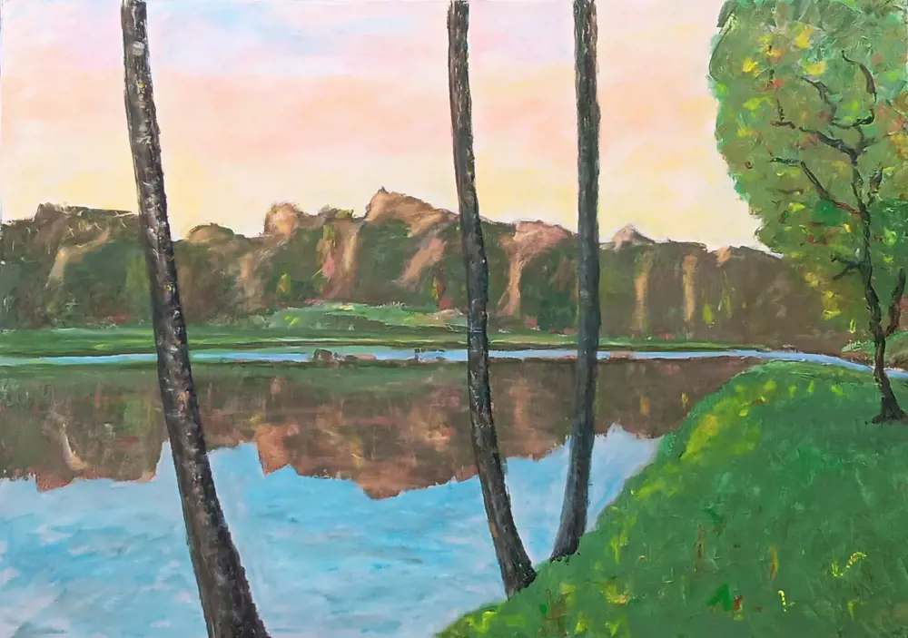Peintures de Paysages, de Paysages dans la Brume et de Reflets dans l'eau réalisés à l'huile /toile